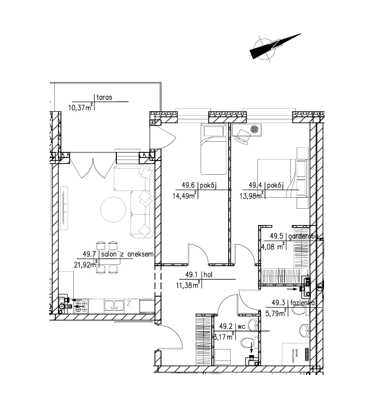 pokój 14,49 m²